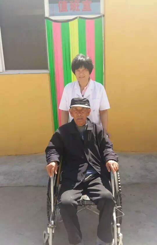 刘大姐和她照顾的老人合影